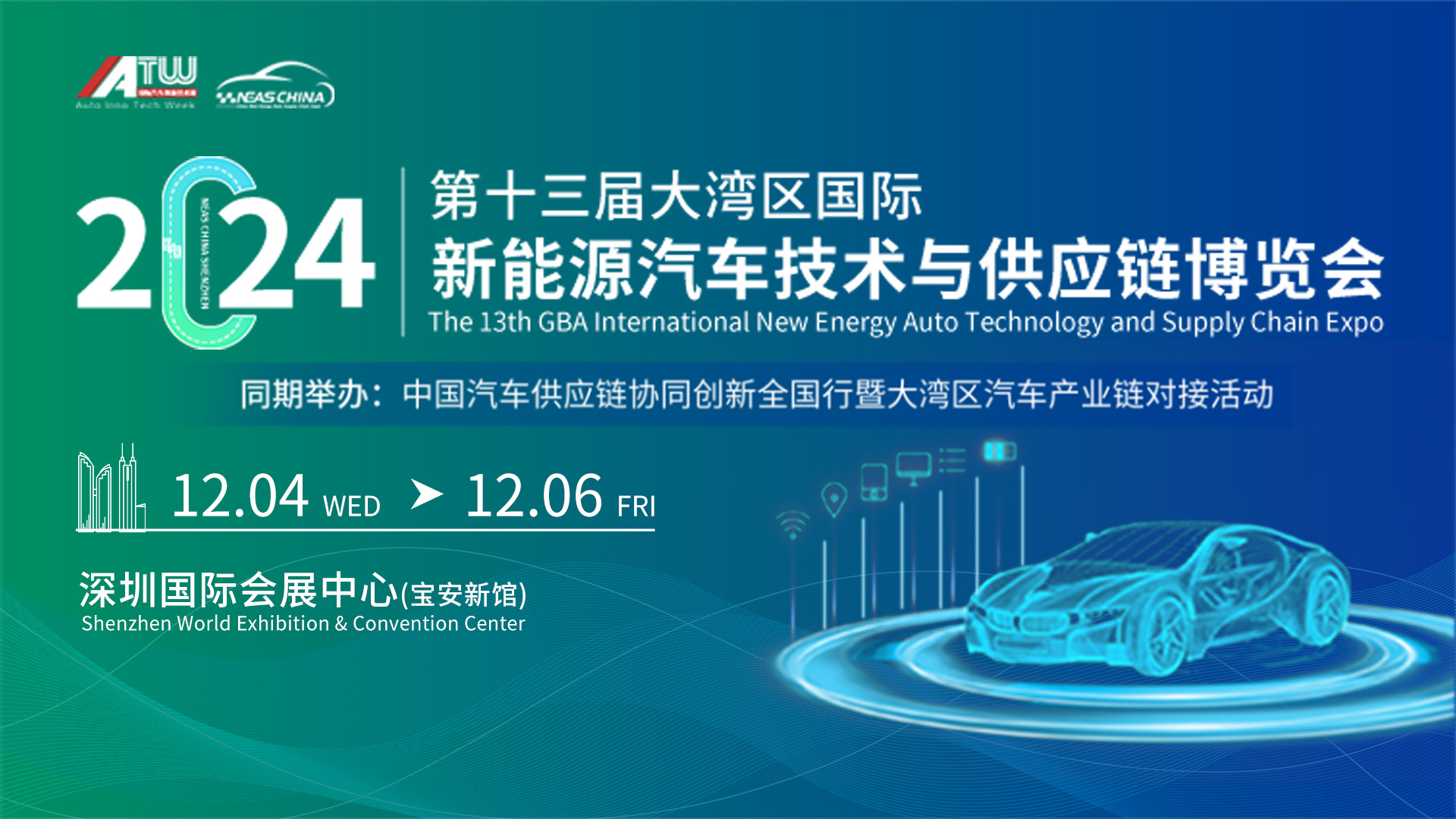 当前,全球新一轮科技革命和产业变革蓬勃发展,汽车与能源、交通、信息通信等领域有关技术加速融合,电动化、网联化、智能化成为汽车产业的发展潮流和趋势。这样的“黄金时代”,让新能源汽车产业充满了憧憬和期待,更让本届NEAS CHINA倍受关注。 由英佛会展联合相关行业组织共同主办的2024第十三届大湾区国际新能源汽车技术与供应链博览会将于2024年12月4日-6日在深圳国际博览中心举行。旨在加快推进碳中和愿景目标下的汽车产业全面电动化转型,进一步加强全球新能源汽车产业协同合作,打造可持续的新能源汽车产业链生态圈,共同构建全球汽车产业绿色低碳可持续发展新生态,全力推动汽车强国建设新跨越。