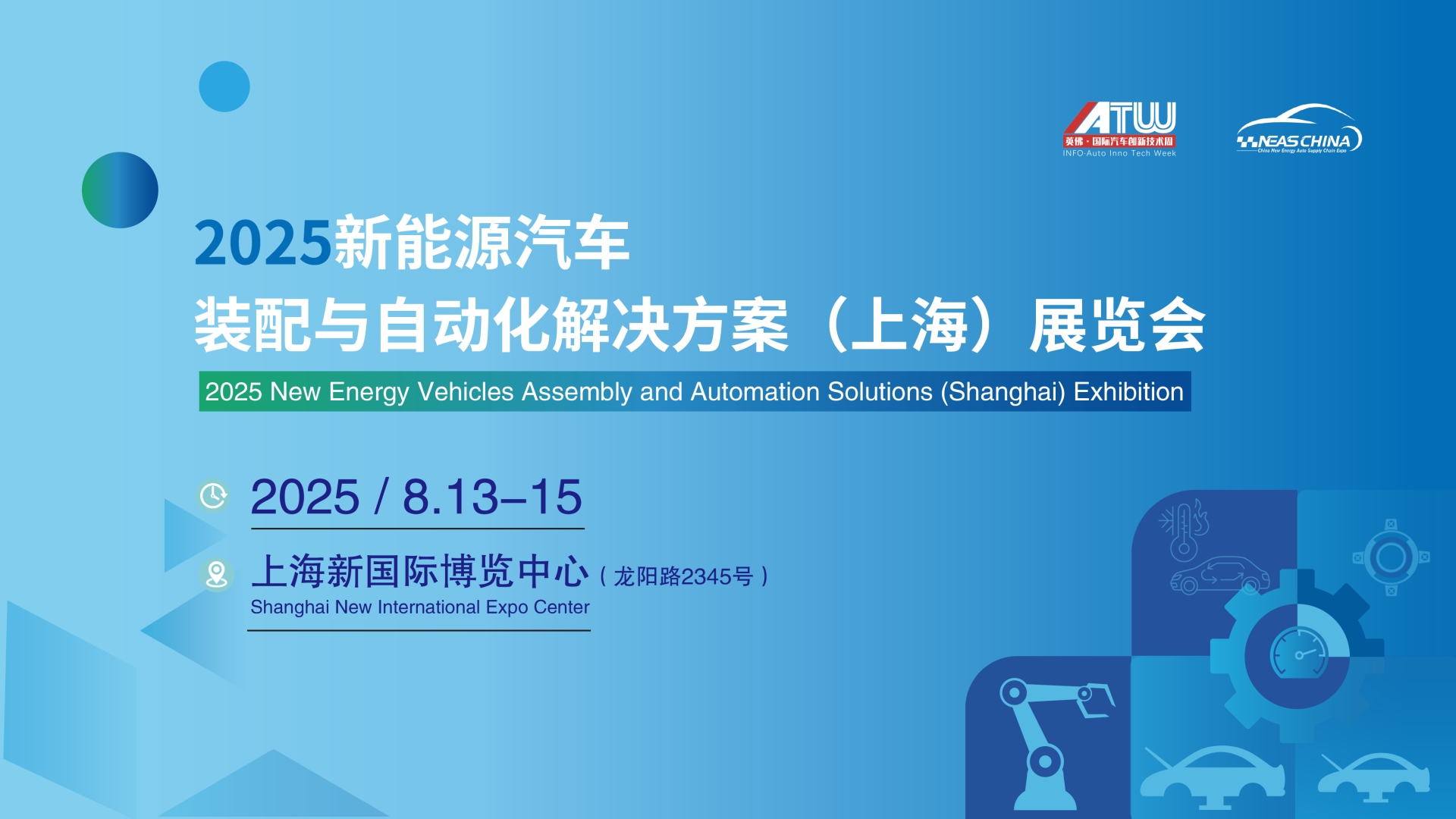 2025新能源汽车装配与自动化解决方案(上海)展览会聚焦新能源汽车关键零部件装配与测试系统集成、智能装配、机器人自动化应用、机器视觉、供料与输送技术、过程控制技术、监控与测试技术、数据采集与智能传感、识别技术等热点技术及系统集成解决方案,汇聚近350+新能源汽车零部件领域的装配系统集成商,一站式展示新能源汽车关键零部件的智能装配与自动化行业解决方案。