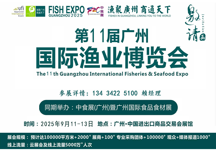 2025广州渔博会|2025广州渔业博览会|2025广州渔业展览会|2025广州水产海鲜展览会|2025中国海产品展会|2025全国渔博会|2025中国水产养殖展览会|2025中国水产养殖设备展览会|冷冻冷藏设备展览会 2025第11届广州国际渔业博览会 同期举办:2025广州国际水产养殖产业展览会 2025广州国际冷链设备暨生鲜配送展览会 时间:2025年9月11-13日 地点:广州·中国进出口商品交易会展馆