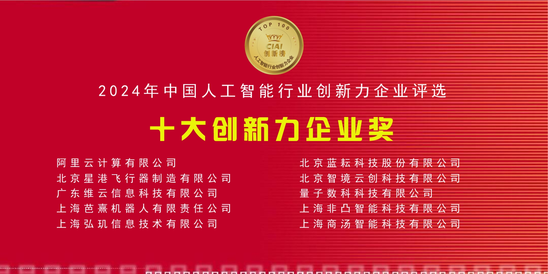 11月27日在大会现场举行的 “2024年中国人工智能行业创新力企业评选”颁奖典礼,现场发布了2024年中国人工智能行业创新力企业百强榜单,并颁发2024年中国人工智能行业“十大创新力企业”、2024年中国人工智能行业“十大创新力产品”、2024年中国人工智能行业“十大最具投资价值企业” 等多个重要奖项。