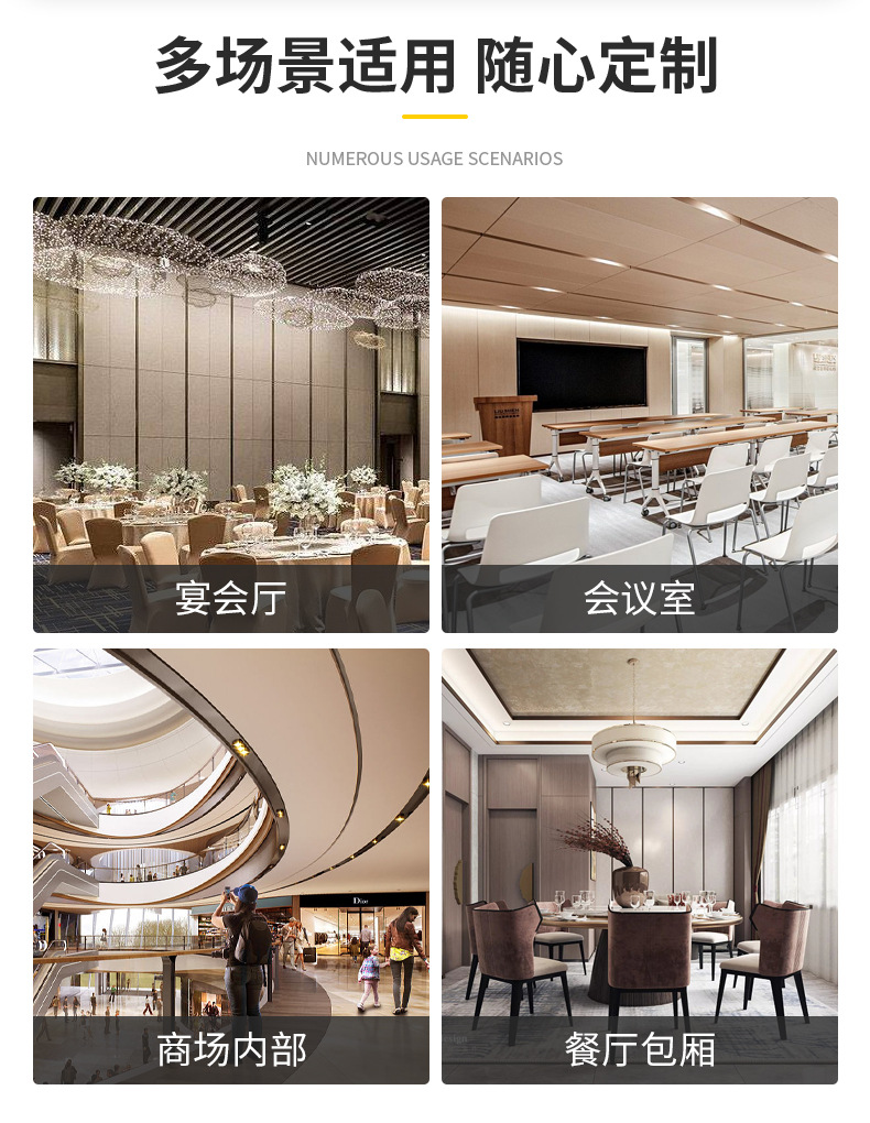 活动隔断主要用于划分空间面积和增加空间,但它不是完全分开的,所以它具有灵活性。这种可变性使空间充满活力,装饰空间。的装饰效果活动隔断比任何家具都好。它不仅霸气十足,更加高贵,而且可以任意改变。 活动隔断分为现代和中国活动隔断。现代的活动隔断主要指活动隔断,它有很好的时尚前沿感。这种活动隔断在材料和设计上大胆新颖,但并不突兀。它放弃了重材料的选择,选择了更轻更时尚的材料,并设计了新的活动隔断大胆使用色度学和几何学。因此,这种活动隔断可以带来更好的室内效果。