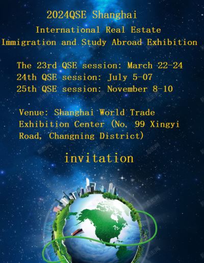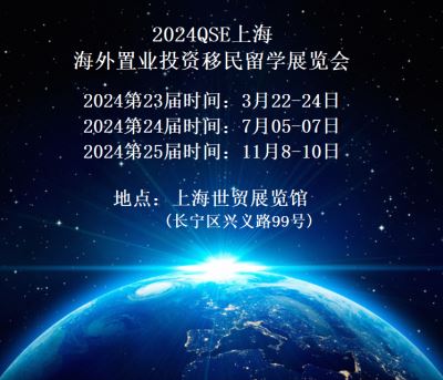 2024QSE上海第24届海外置业投资移民留学展览会 展会时间:第24届时间:2024年7月05-07日 第25届时间:2024年11月8-10日 展览地点:上海世贸展览馆(长宁区兴义路99号)